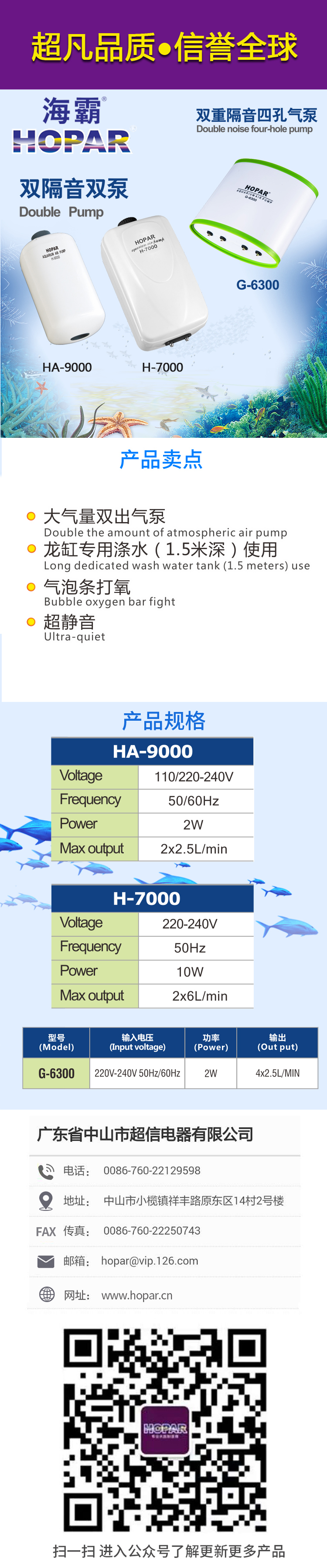 HOPAR HA-9000 / H-7000 / G-6300 Double noise four-hole pump