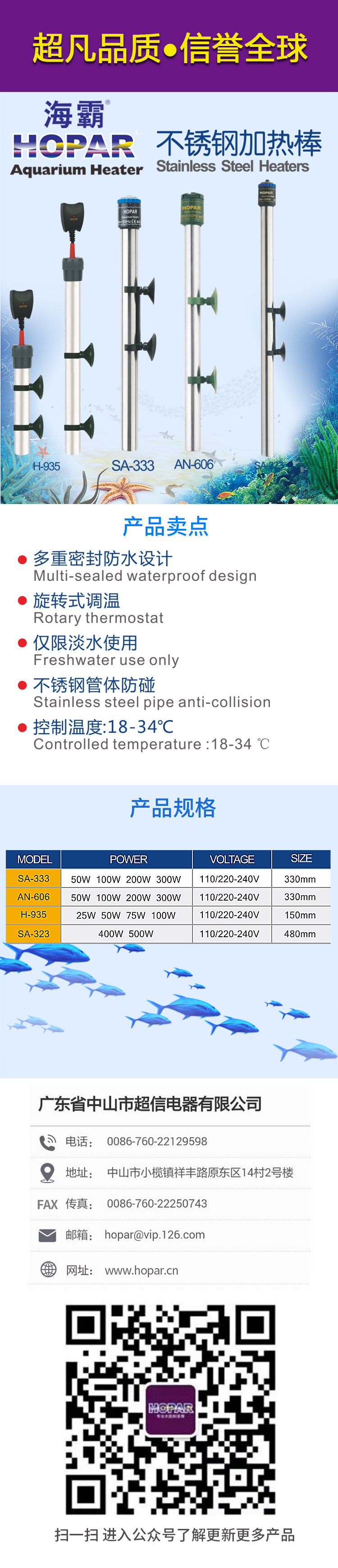 HOPAR海霸 H-935 / SA-333 / AN-606 不锈钢加热棒